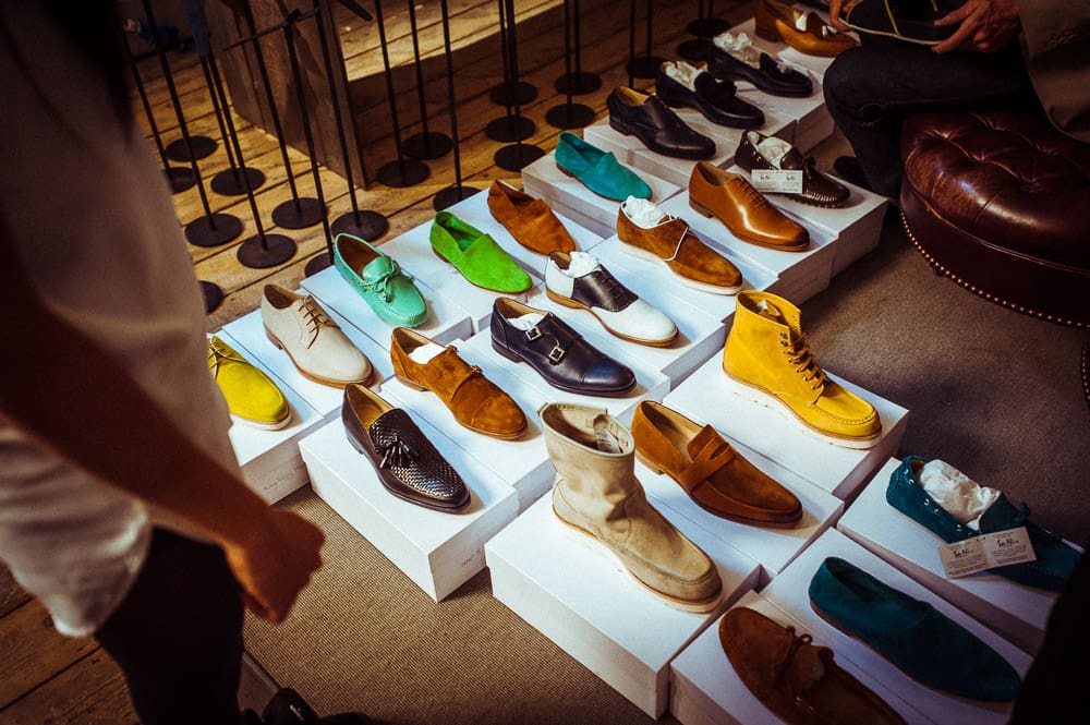 Arguably it was the third room which really brought the pair together though, a display of Mr Hare’s shoes showed the true breadth of his design; from suede double monk strap dress shoes to the woven tassel loafers which the brand was initially created to design, and soft suede espadrilles in every colour of the rainbow.